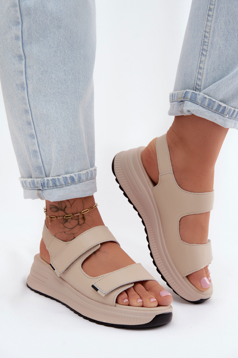 Sandálias de plataforma femininas em cor de areia com fechos adesivos Jemela