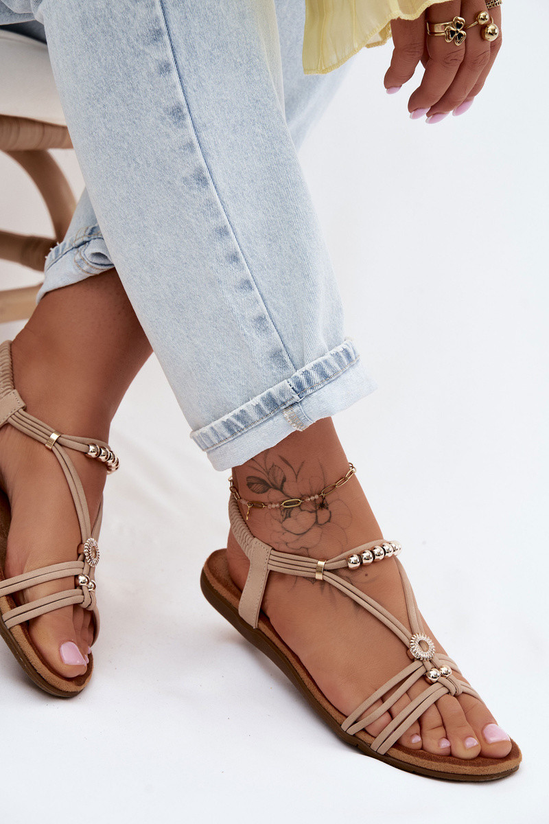 Sandálias planas de cor areia para mulheres com tiras Zelda