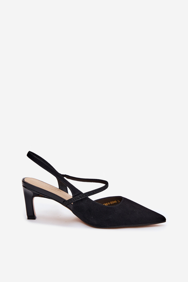 D&ASapatos de salto elegantes em camurça preta com tiras decorativas D&A