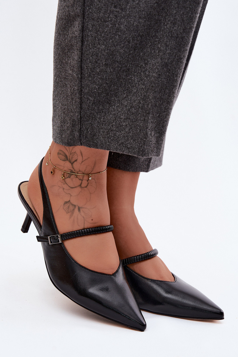 Sandálias de salto alto pretas com tiras D&A