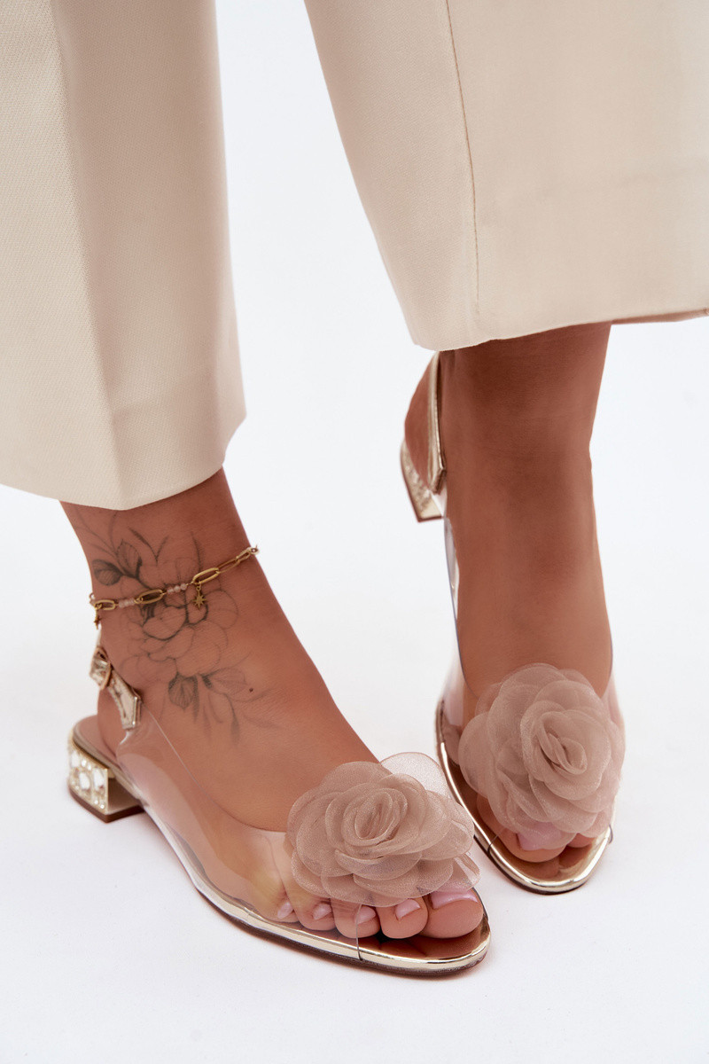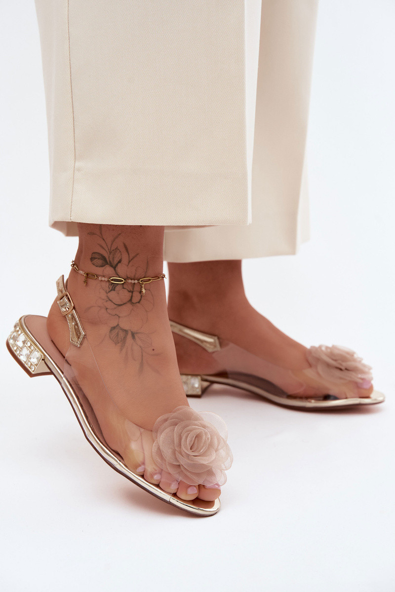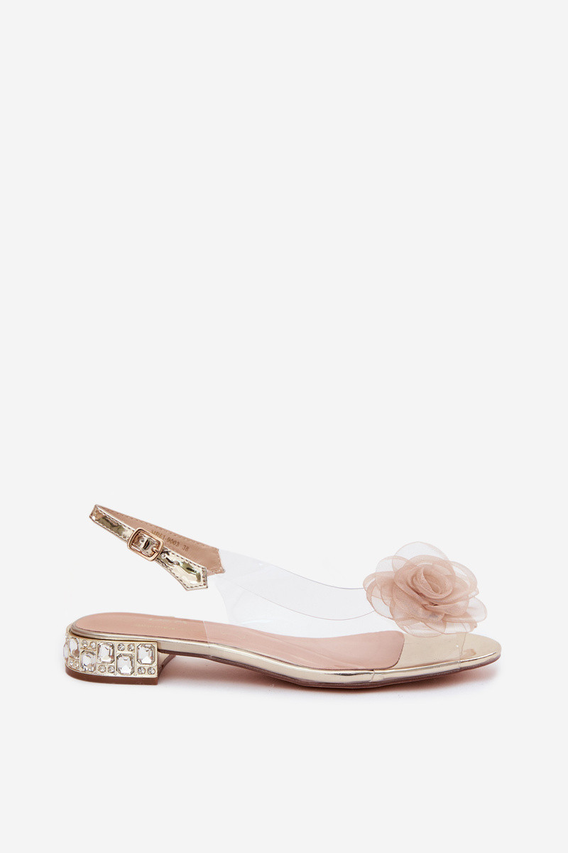 Sandálias transparentes femininas com rosa D&A MR61-9003 douradas
