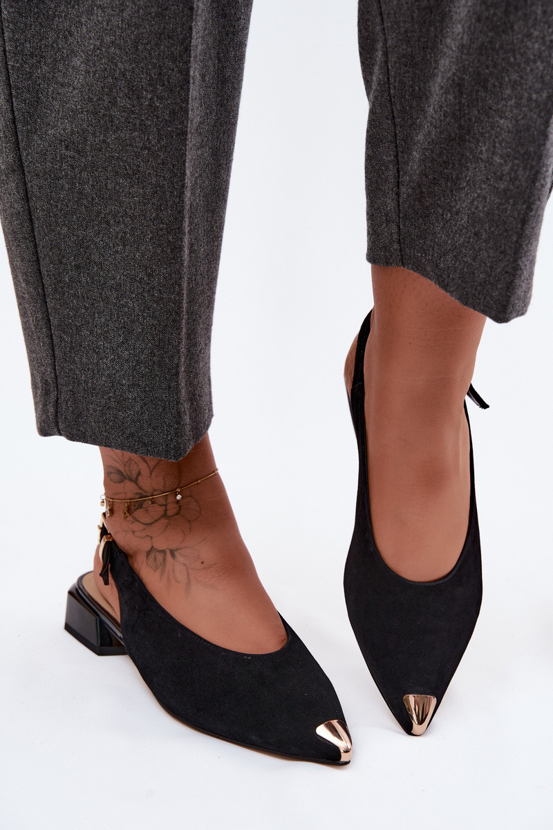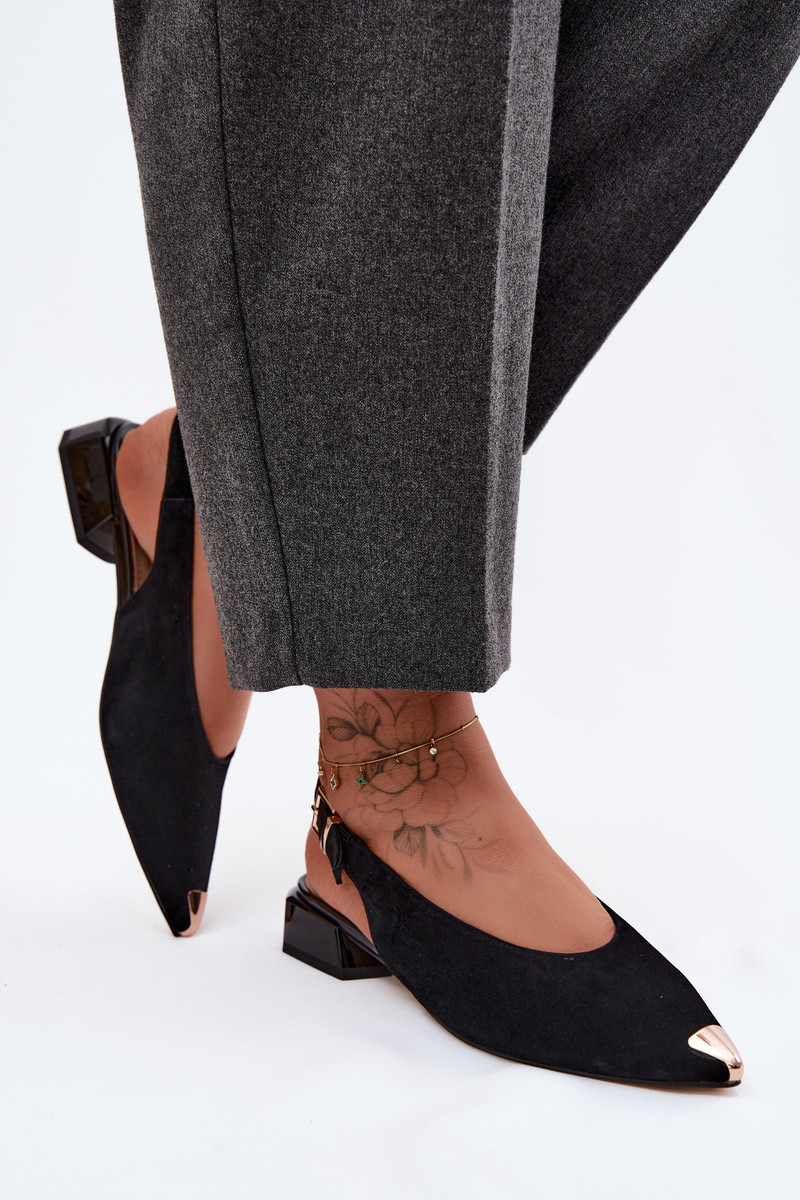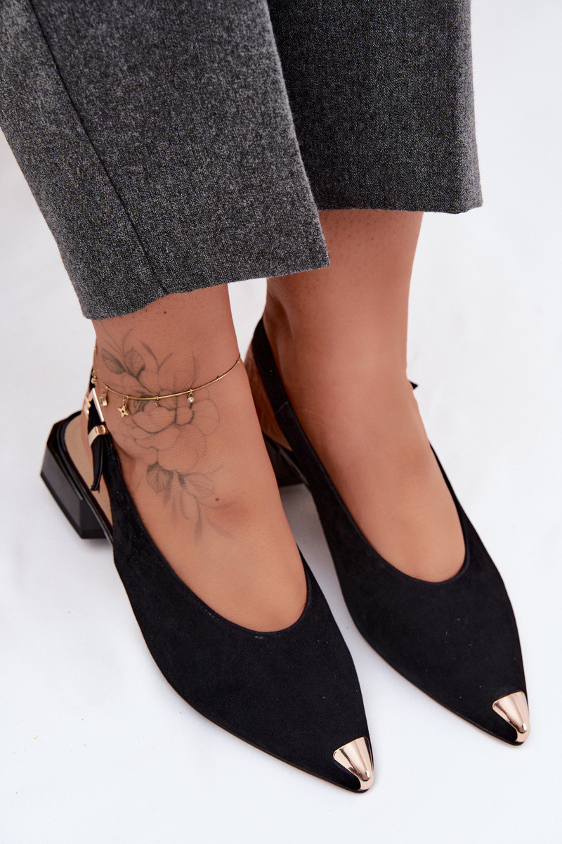 Sandálias de camurça femininas com salto baixo D&A CR61-3050 pretas