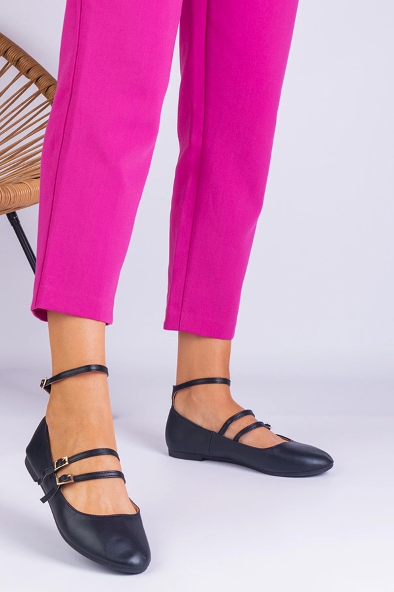 Bailarinas pretas de couro sintético com fivela Vitoldora