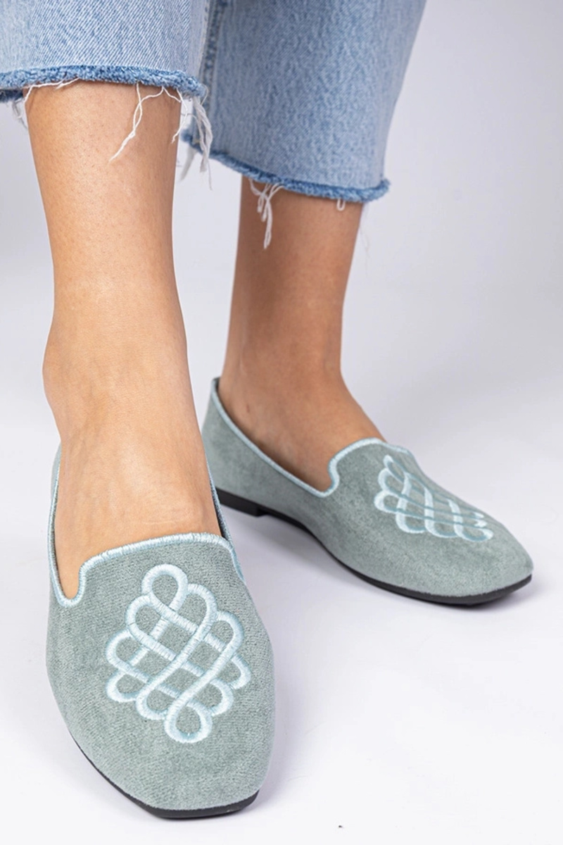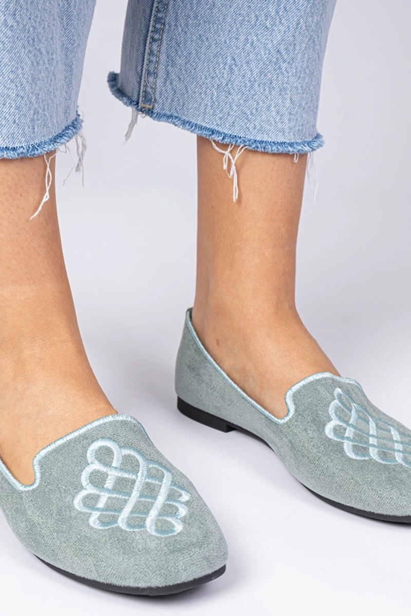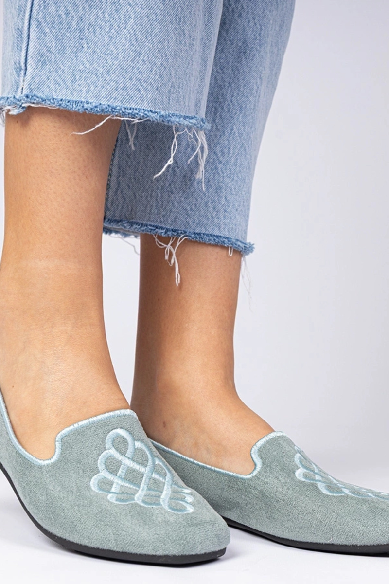 Sapatilhas femininas verdes de camurça com bordado Ronna