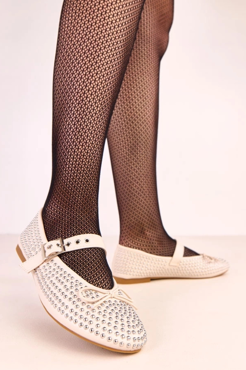 Bailarinas areia decoradas com tachinhas e laço Mylie
