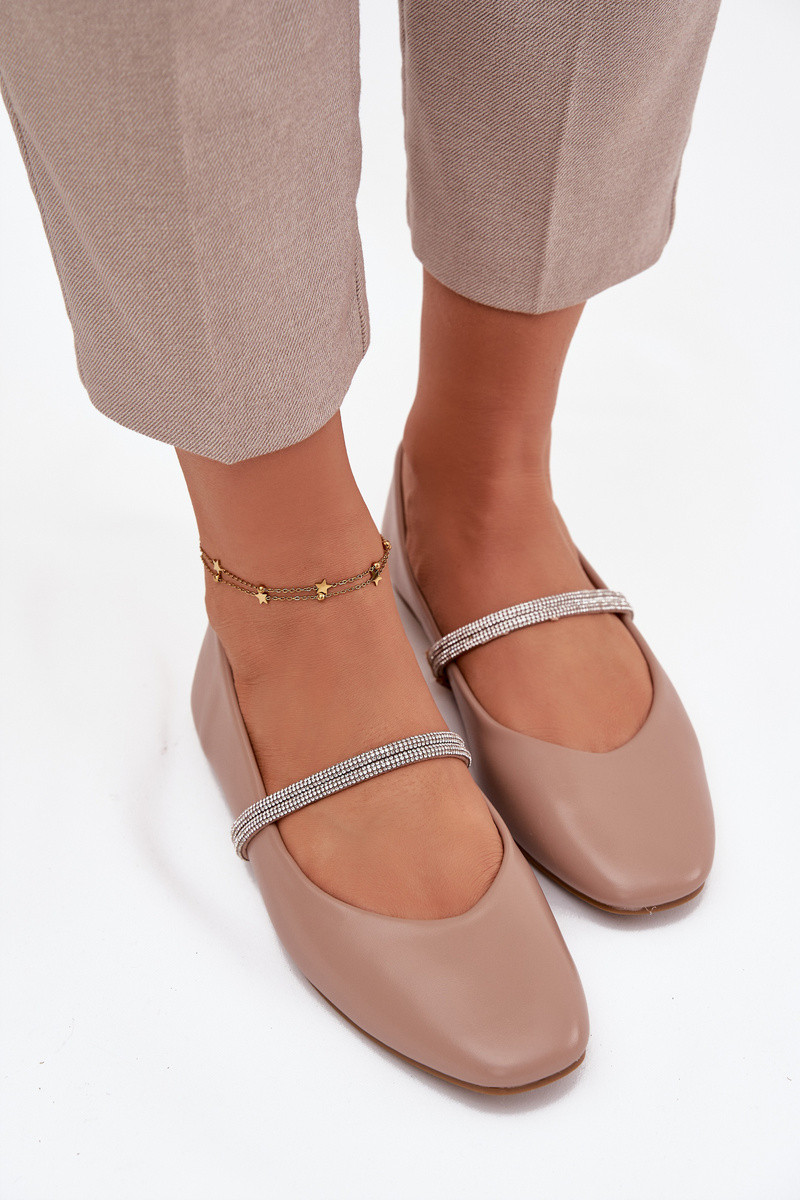Bailarinas femininas com tiras brilhantes na cor areia Ilirene