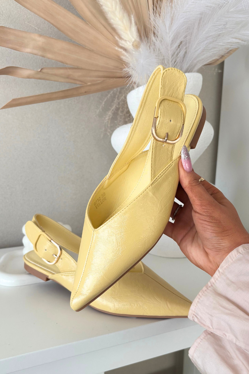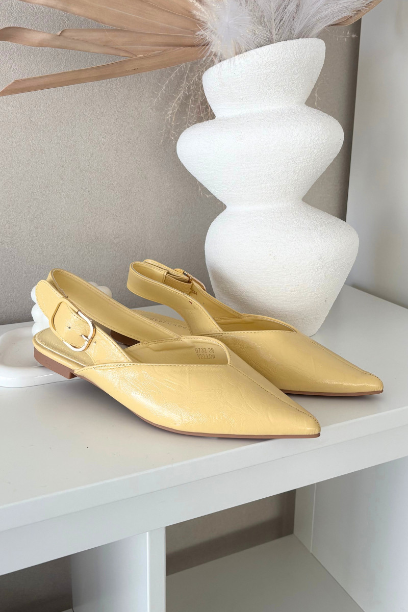 Sapatilhas envernizadas com fivelas na cor amarela Rinalle