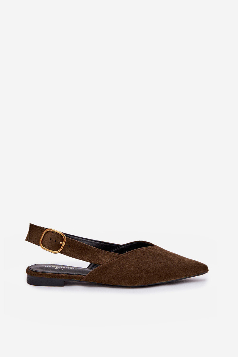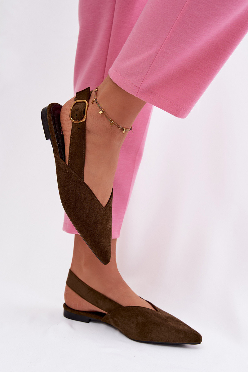 Bailarinas com fivelas douradas de camurça sintética, cor verde Palerra