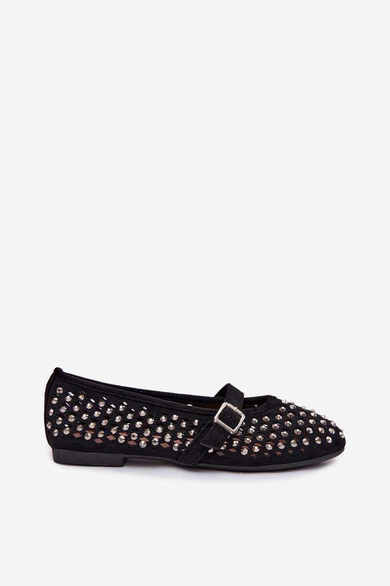 Bailarinas femininos com elementos de renda e brilhantes na cor preta Nilvessa