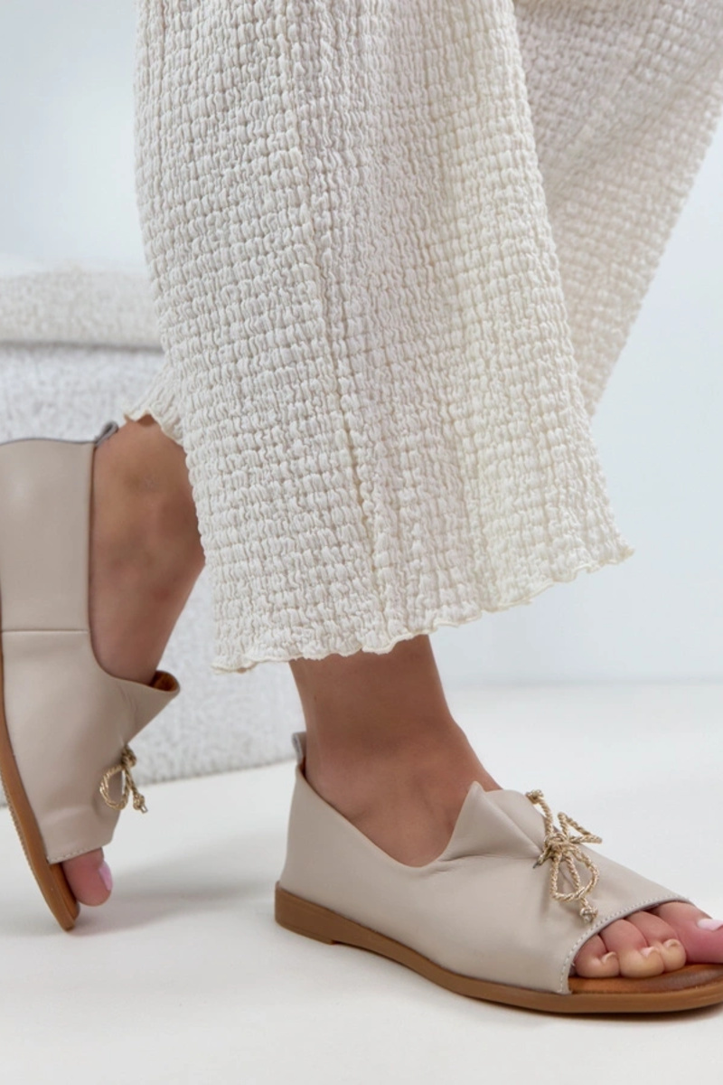Bailarinas de couro bege com ponta aberta Cambell