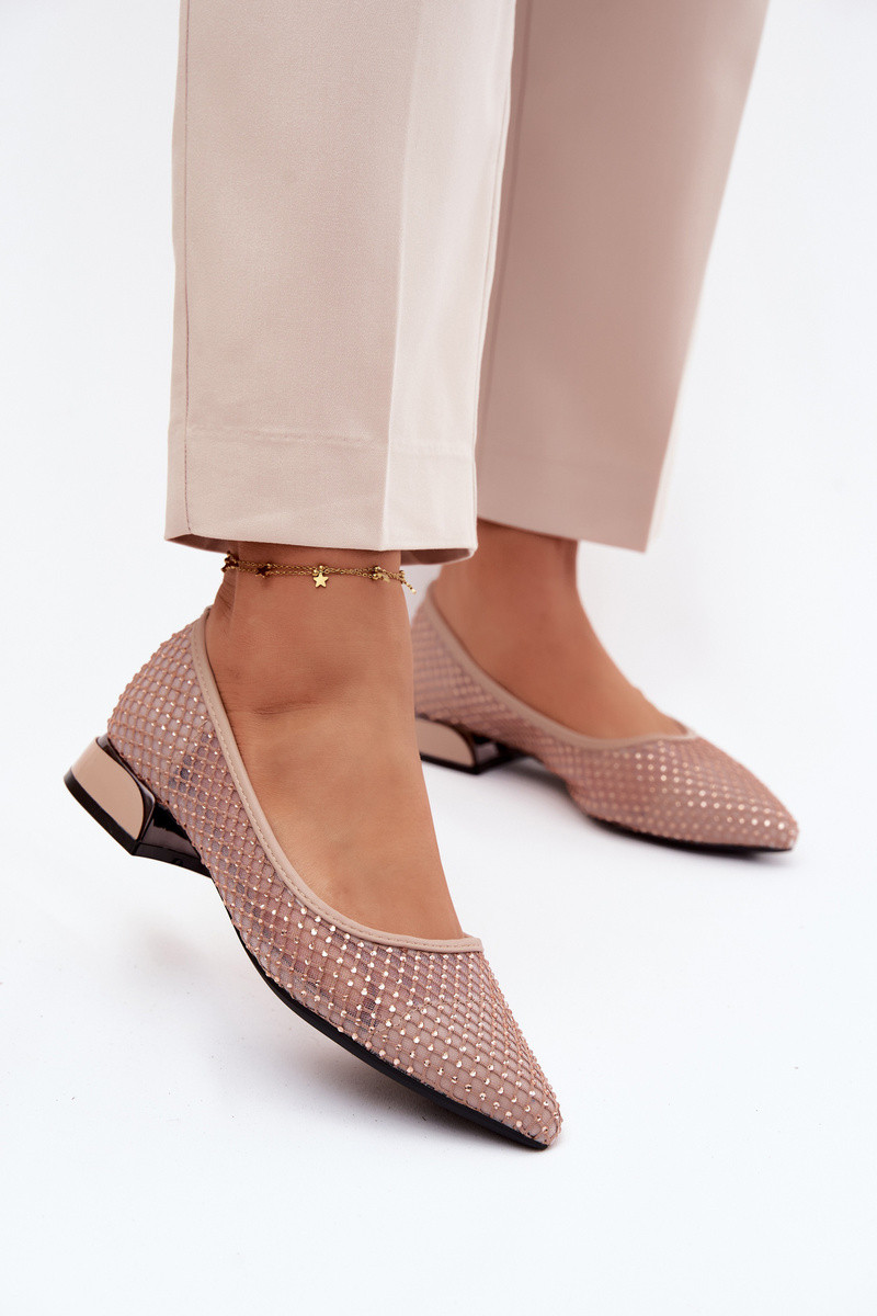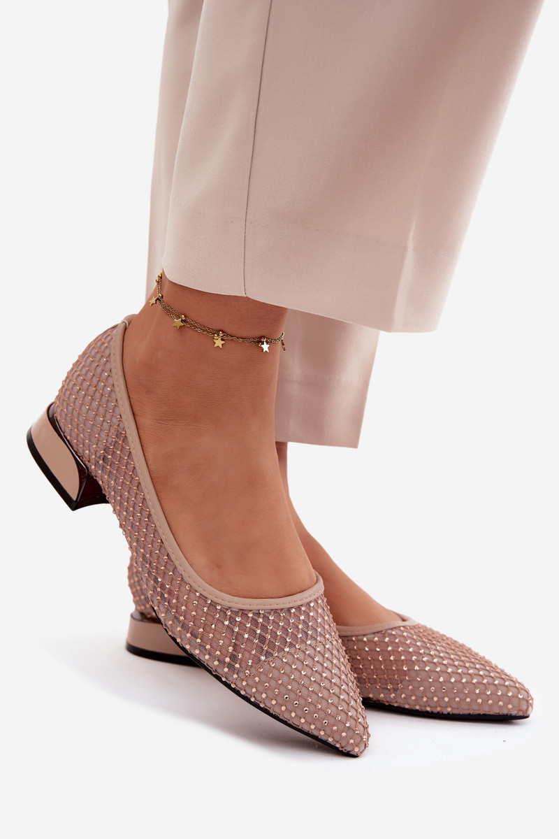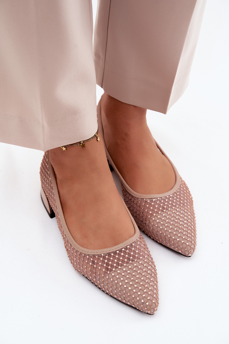 Ballerinas bejes com salto baixo e decoração em rede Vinceza 62294