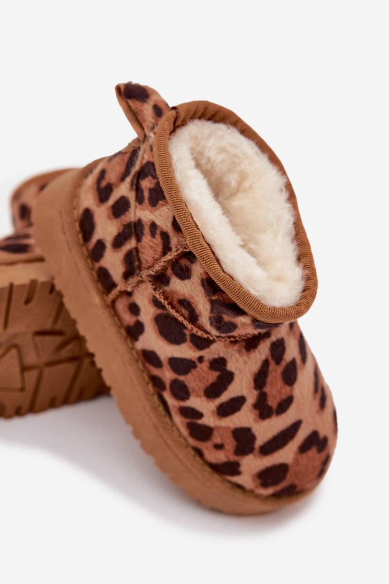 Botas de neve infantis/juvenis quentes na cor marrom com pelúcia interna e estampa de pele de leopardo Mireya