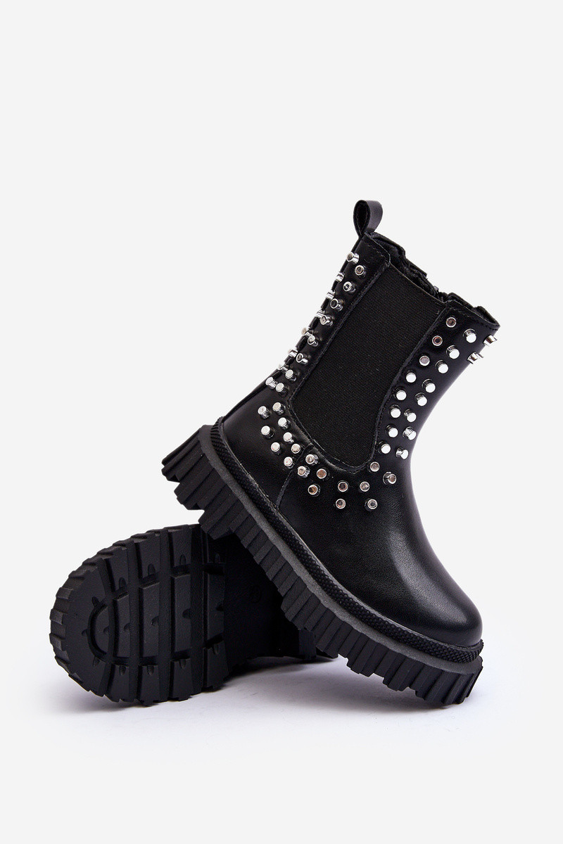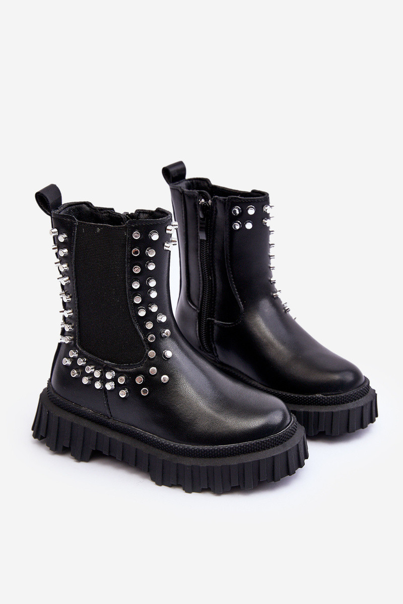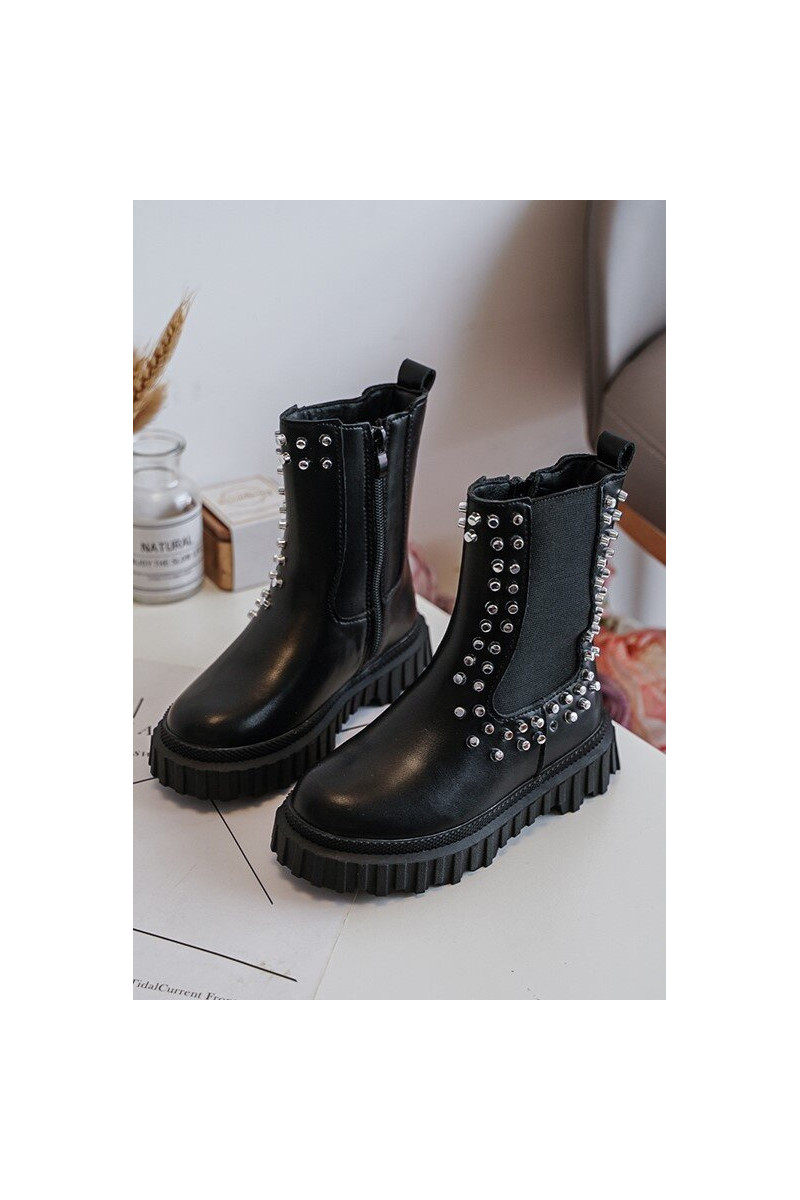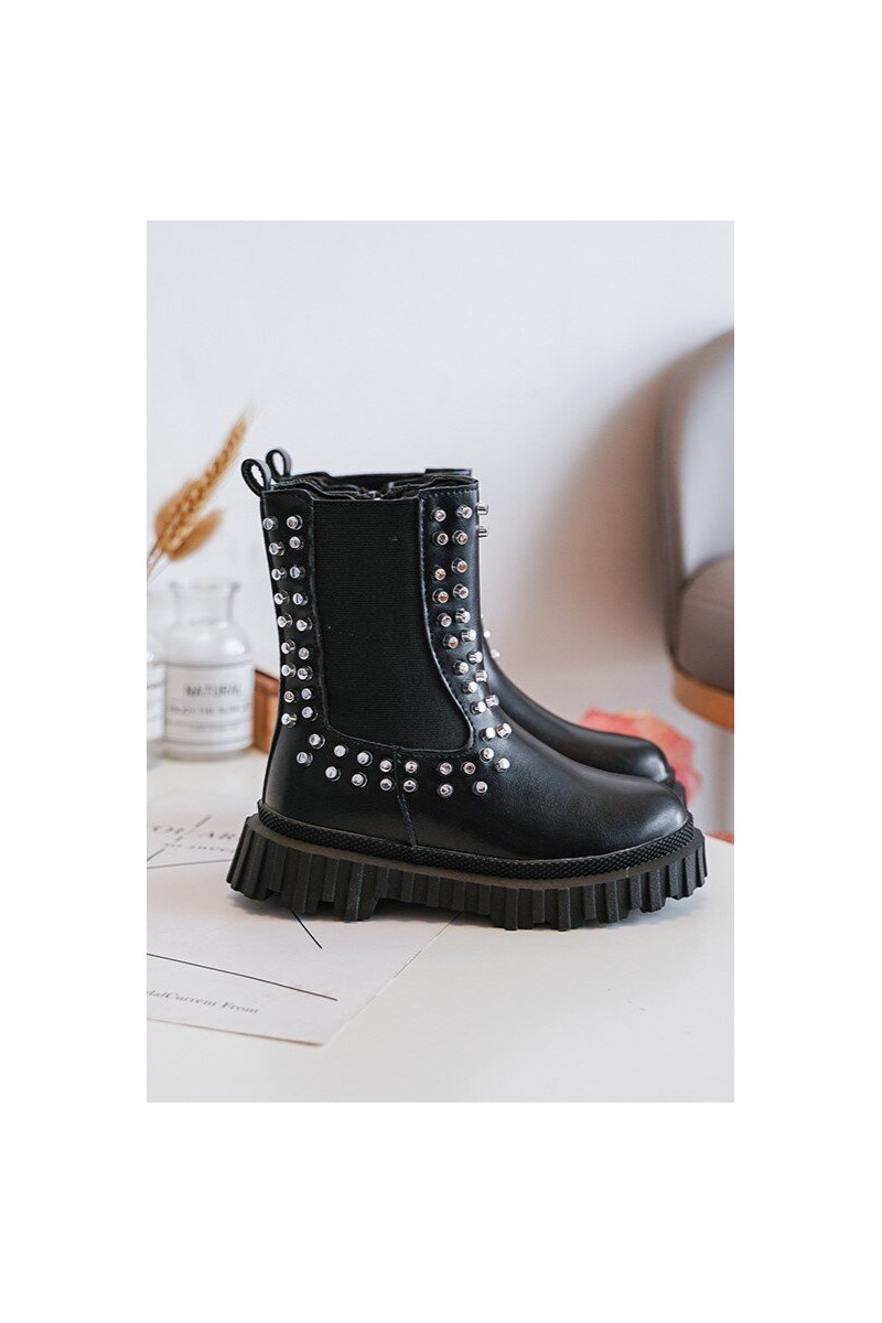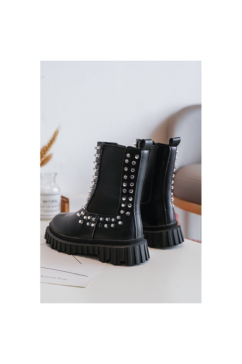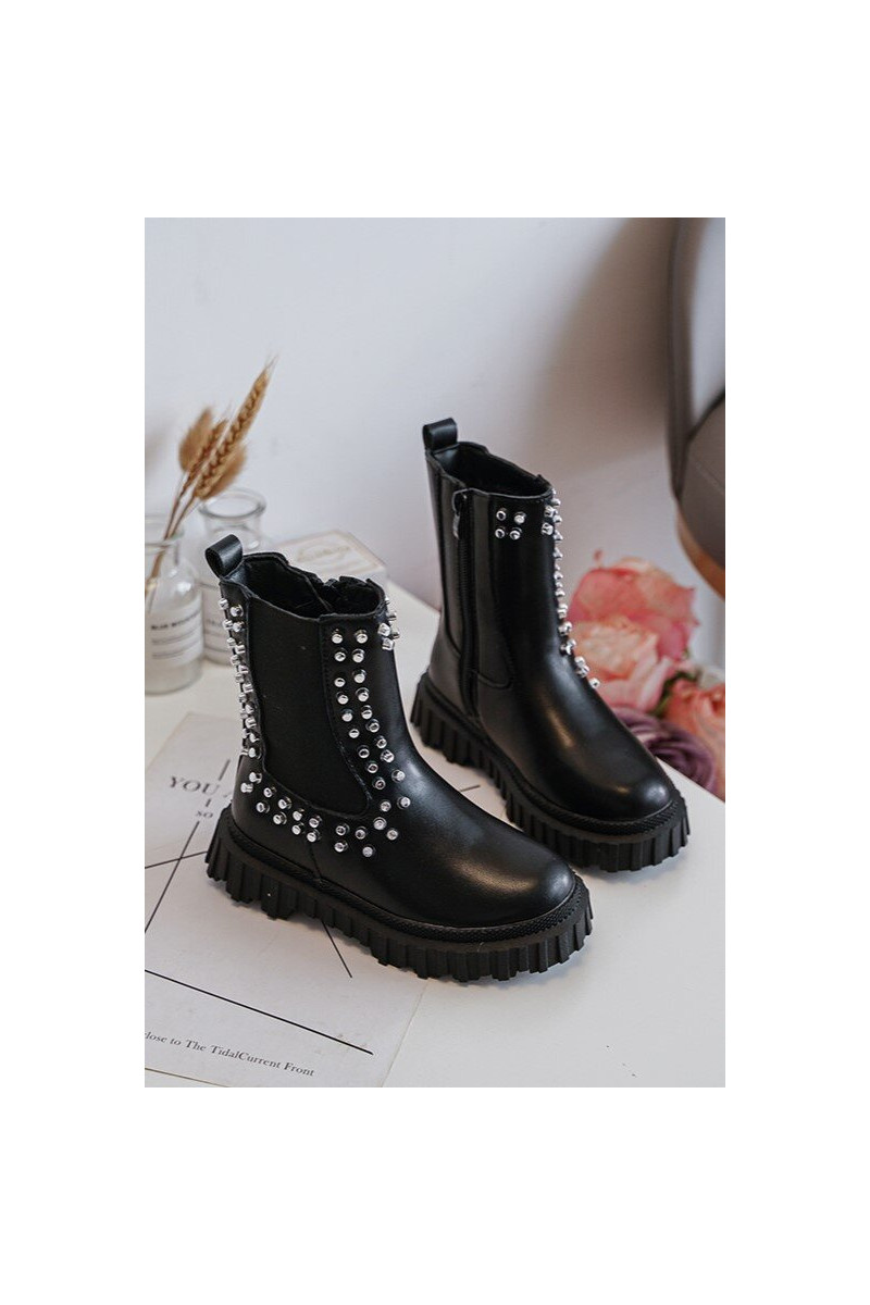 Botas infantis pretos Adelie, decorados com cristais