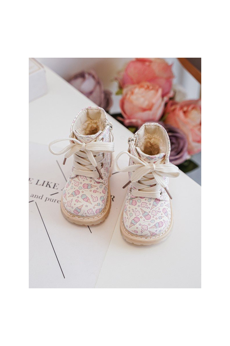 Botas infantis acolchoadas com zíperes em tom areia Dolida