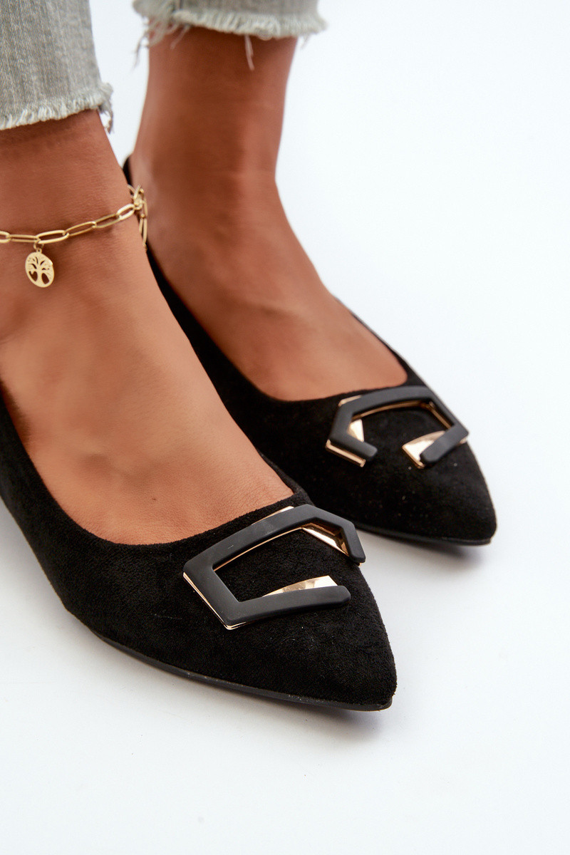 Sapatos de salto baixo com enfeites de camurça ecológica S.Barski KV27-034 preto