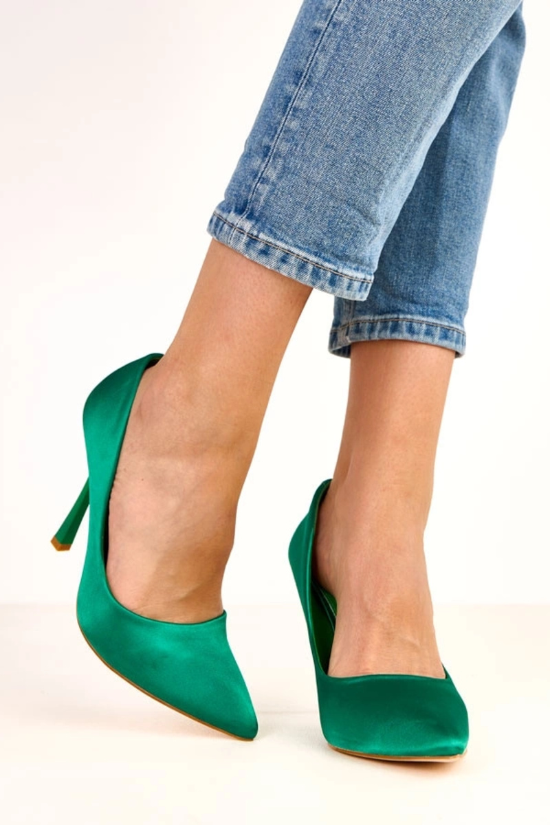 Sapatos de salto alto verdes com acabamento em cetim Cindy