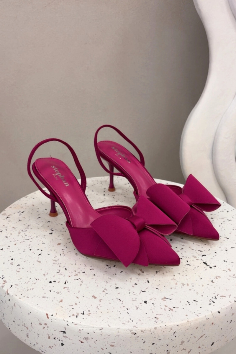 Sapatos de salto rosa com calcanhares abertos e laço "Eklevia"