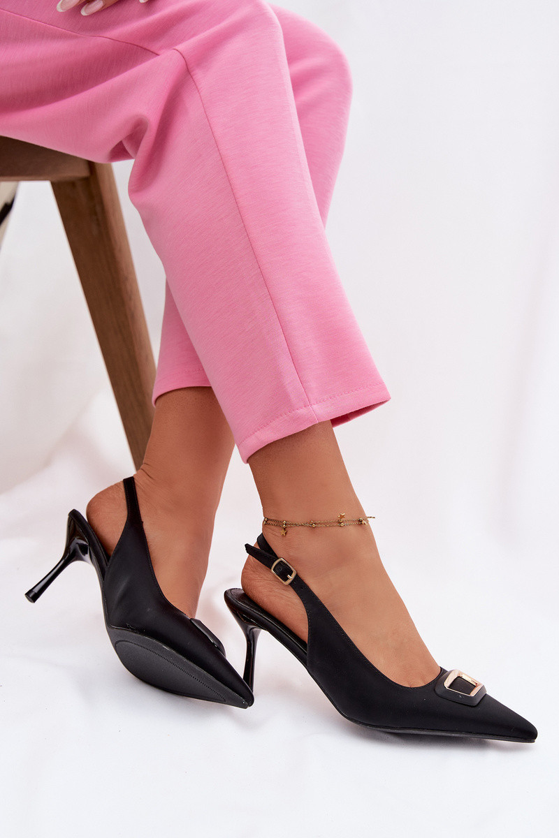 Sandálias femininas de salto alto decoradas pretas Palerine