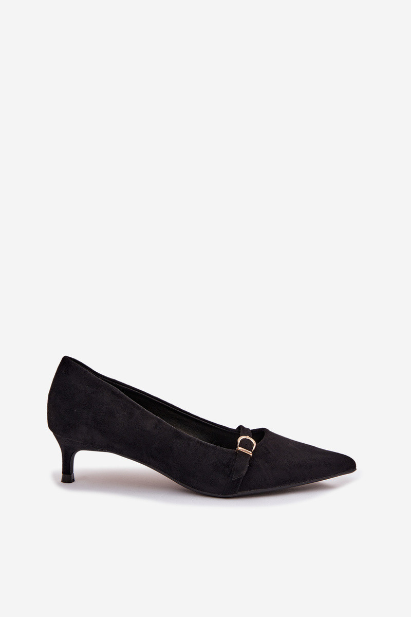 Sapatos femininos com salto baixo e saltos decorados na cor preta Pirela