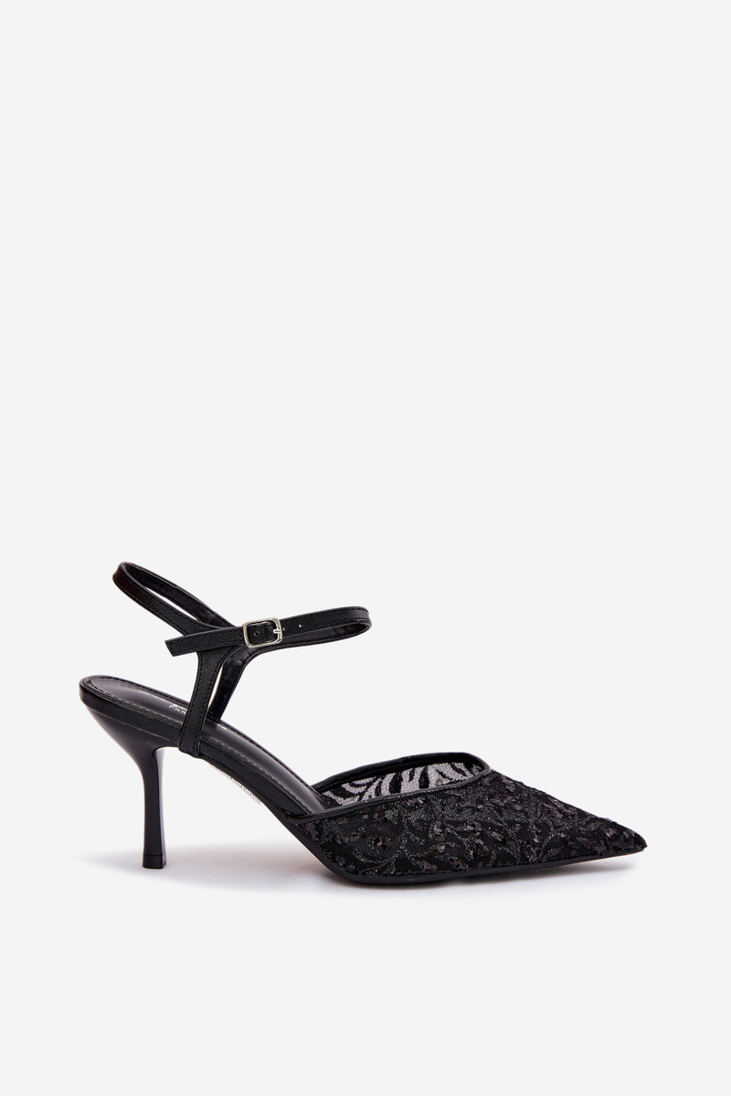 grade Sandálias femininas com salto finocom brilhoującym Zdobieniem cor preta Laria