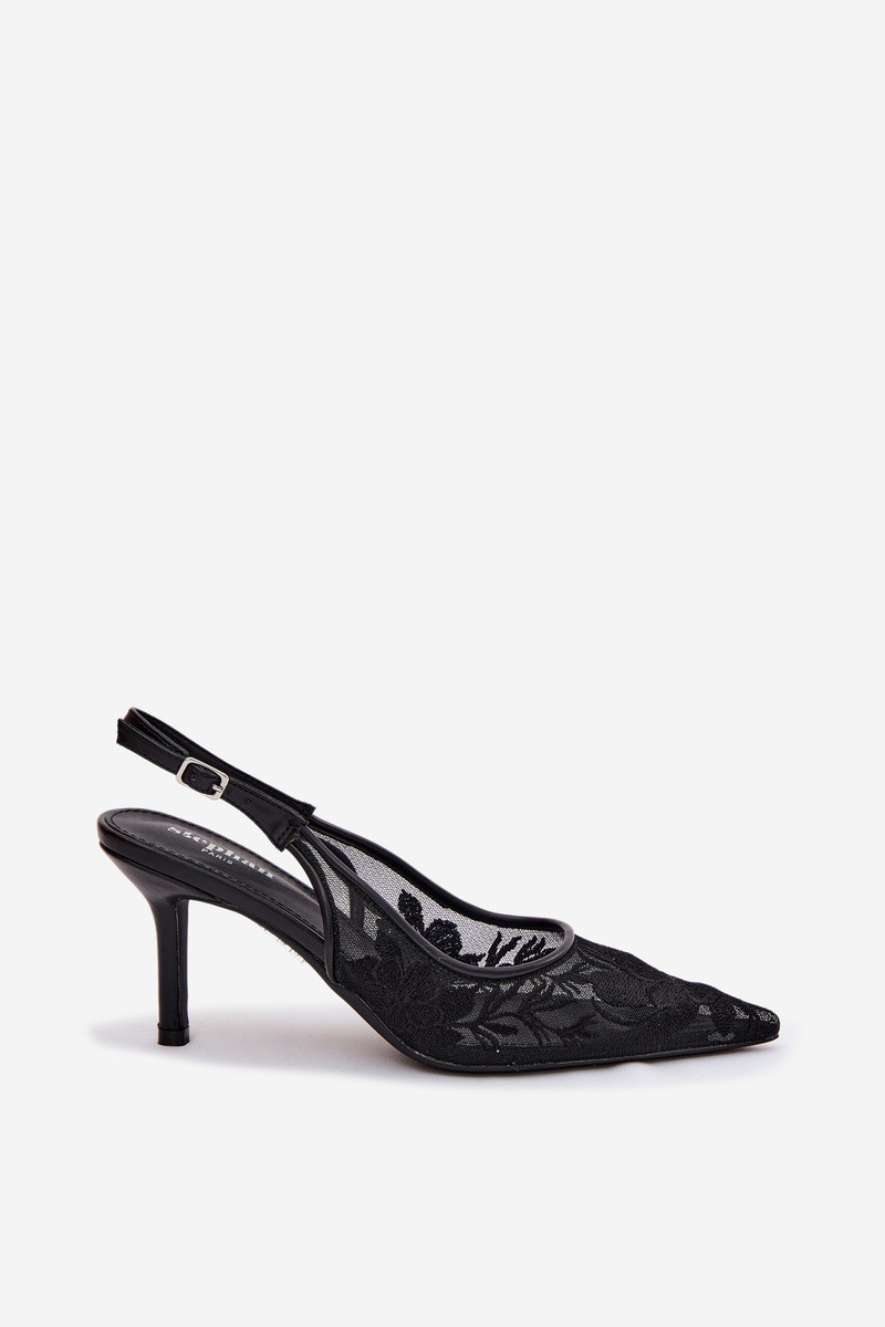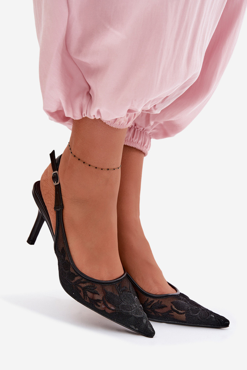 com motivos de renda grade sandálias com salto fino cor preta Tem que servia