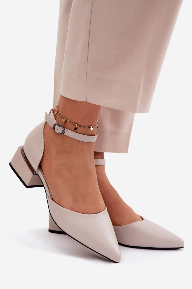 Sapatos bejes com salto e tira Vinceza 62278
