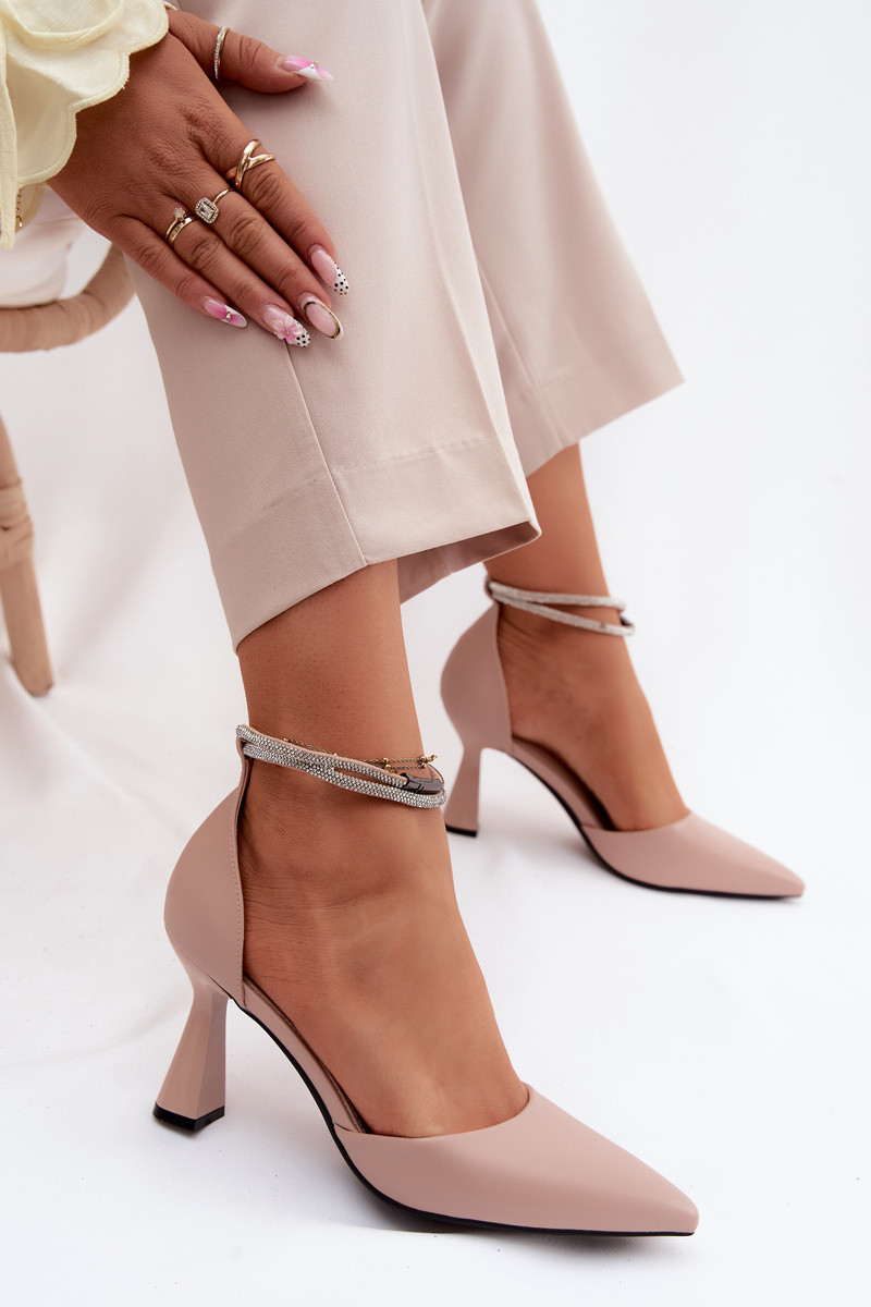 Sapatos de salto beje com tiras brilhantes Vinceza 62283
