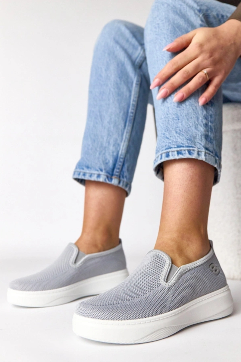 Tênis esportivos femininos com rede e cravos na cor cinza Ogalda