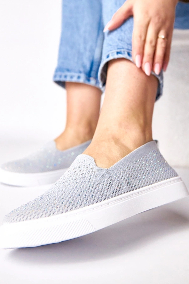 Tênis esportivos femininos com rede e cravos na cor cinza Ogalda