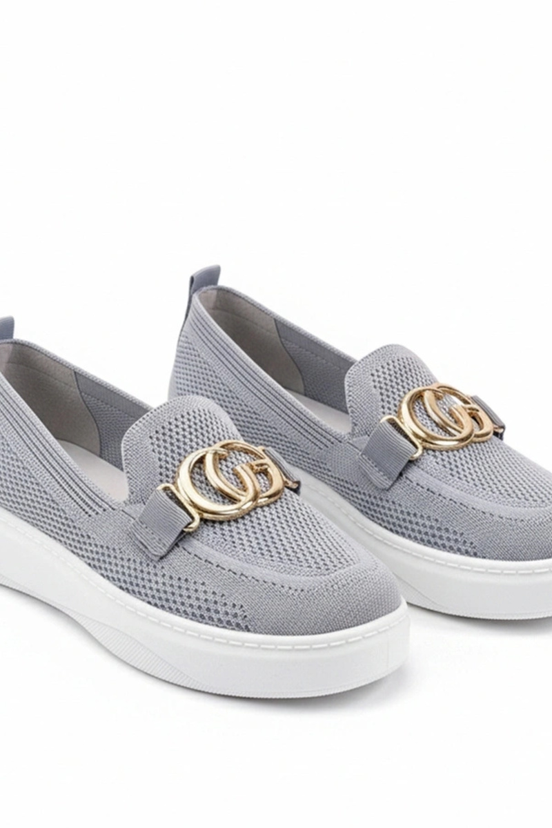 Tênis esportivos femininos com rede e cravos na cor cinza Ogalda