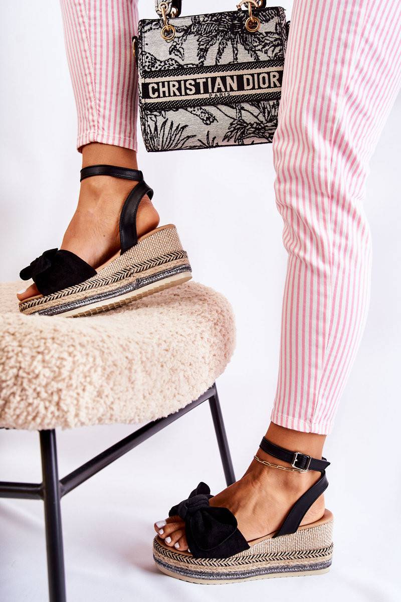 Sandálias plataforma em camurça na cor preta Natina