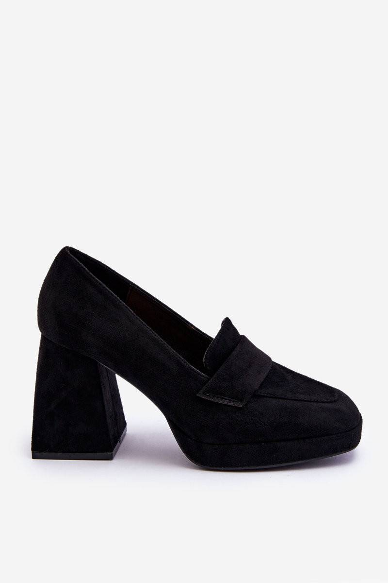 Sapatos pretos com salto largo e plataforma Adriel confeccionados em camurça