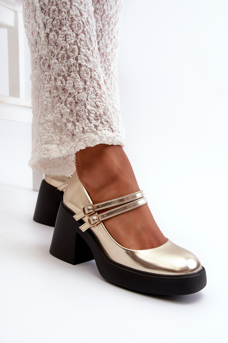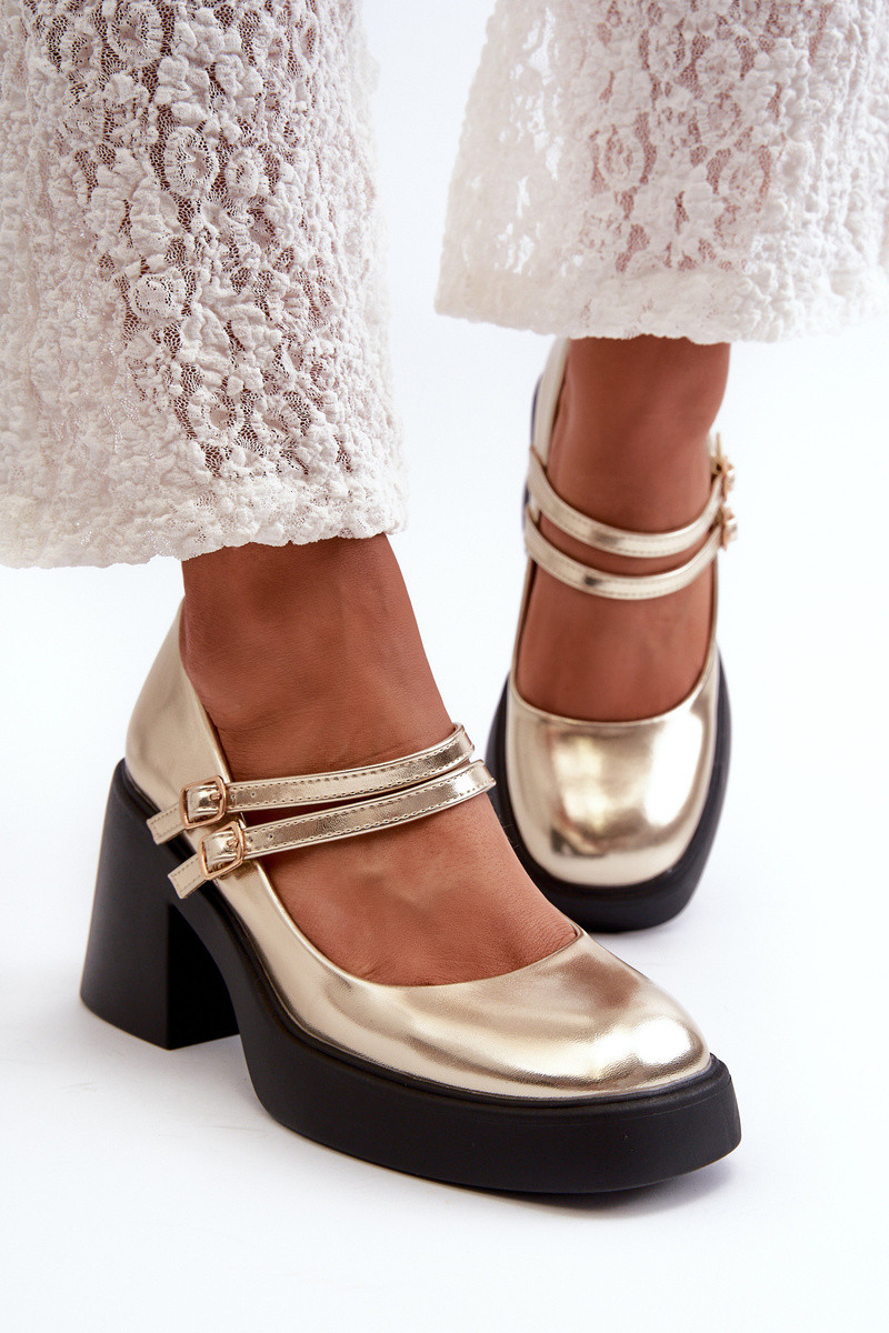 Sapatos de salto largo em couro sintético na cor dourada Halmina